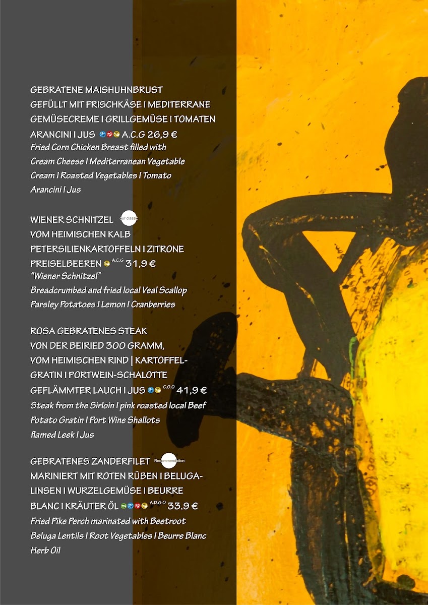 A standout feature of the menu is the wide selection of starters and light bites. The Bruschetta is a fresh and tasty choice, while the Lachs Tatar offers a refined touch with its salmon-based dish. For a unique twist, try the Zweierlei Vom Lachs, a dual salmon dish that will leave you wanting more. The Beef Tatar Klein also offers a rich and flavorful experience for anyone looking to indulge in raw beef.